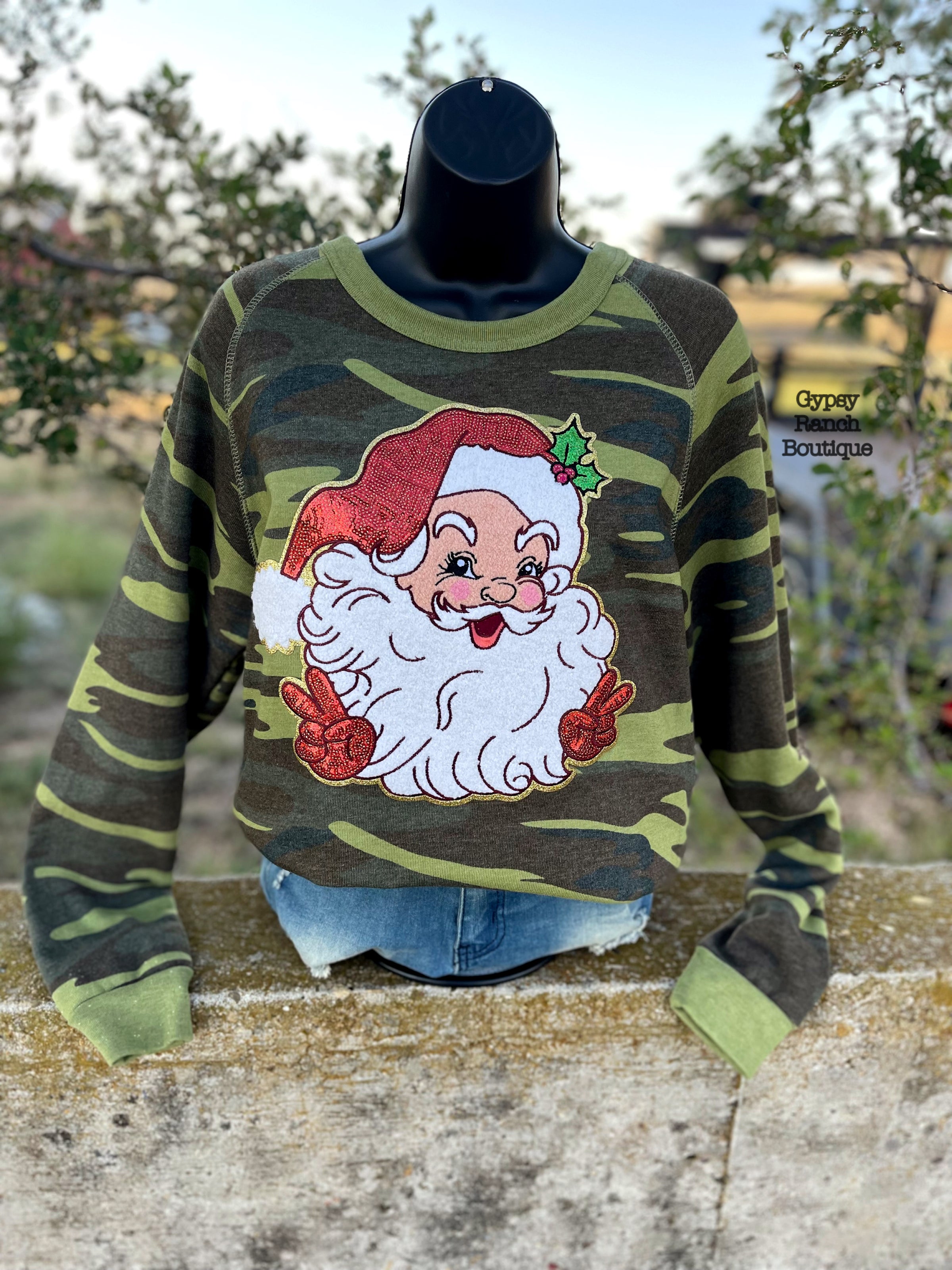Sequin Santa Camo Christmas Sweatshirt - Also in Plus Size