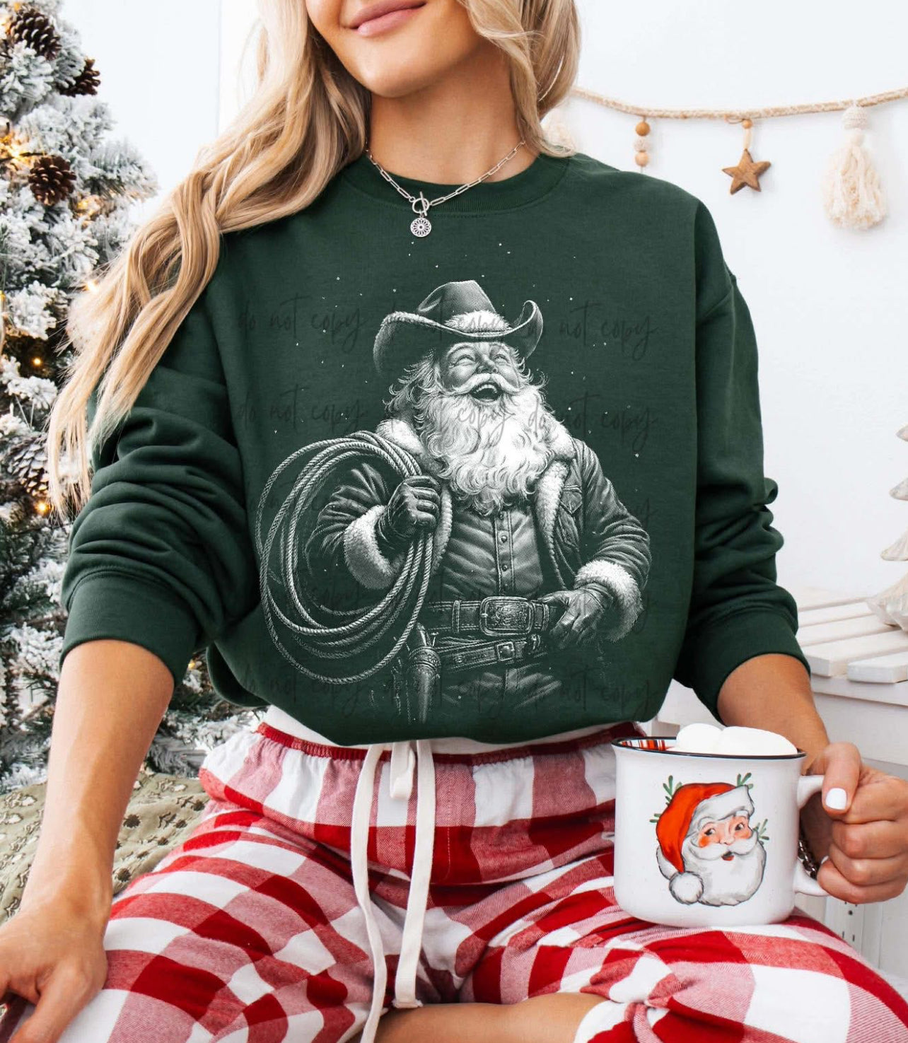 Cowboy Santa Half Tone on Black Sweatshirt - Also in Plus Size