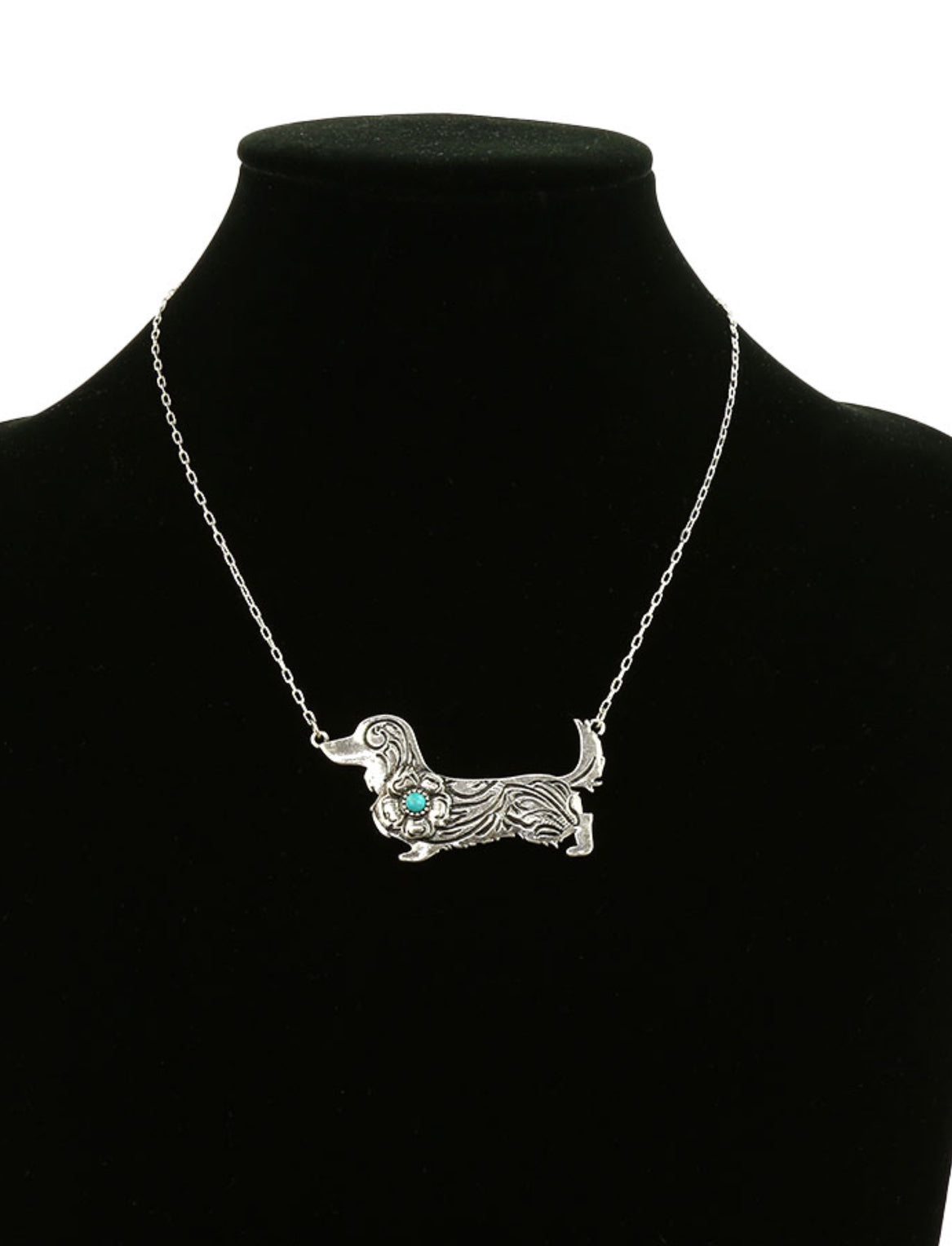 Dachshund Engraved Turquoise Weenie Dog Necklace