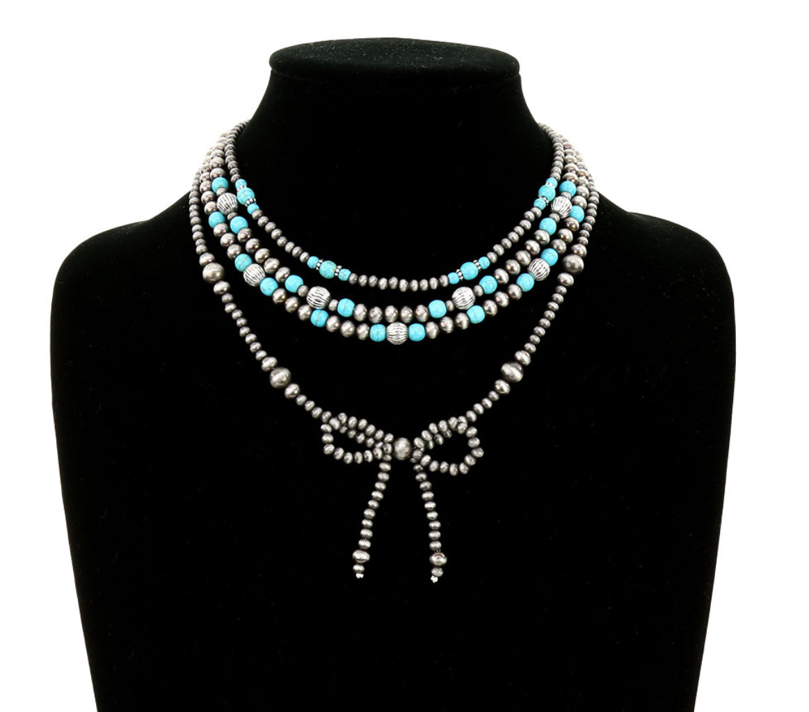 Gunter Turquoise Navajo Pearl Bow Layered Necklace