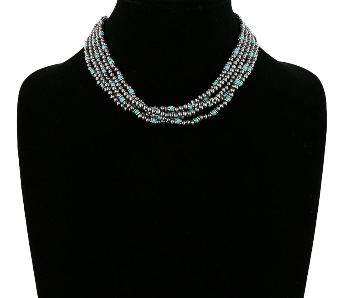 Slidell Faux Navajo Pearl Turquoise Layered Necklace