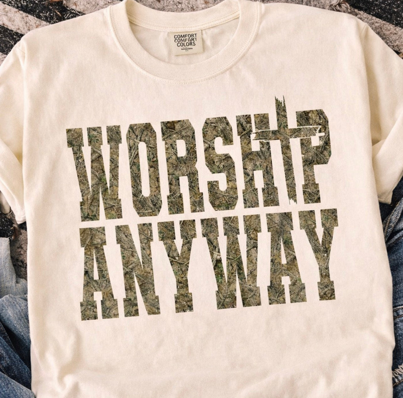 Camo Worship Anyway Tee - Also in Plus Size