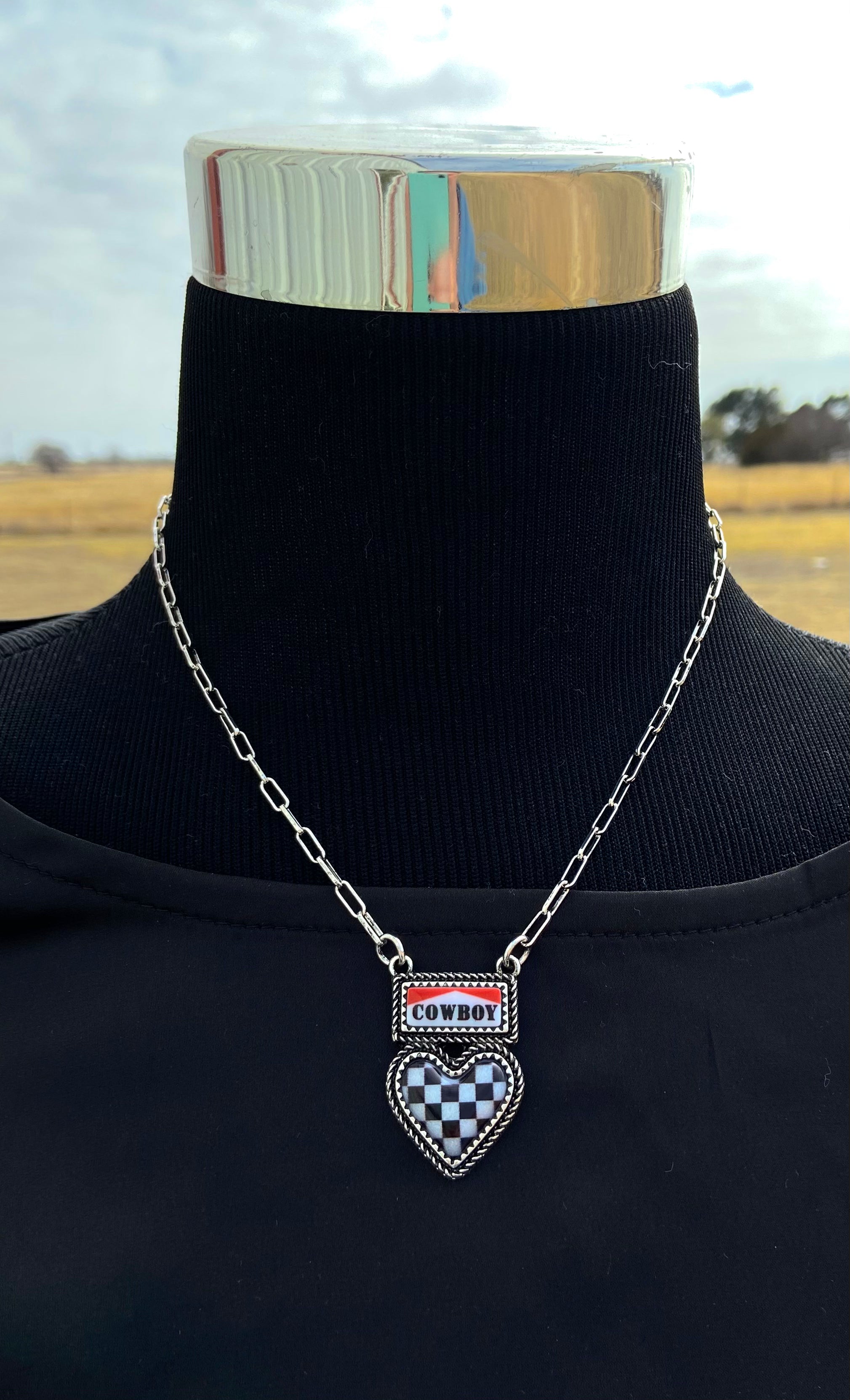 Cowboy Heart Checkered Necklace