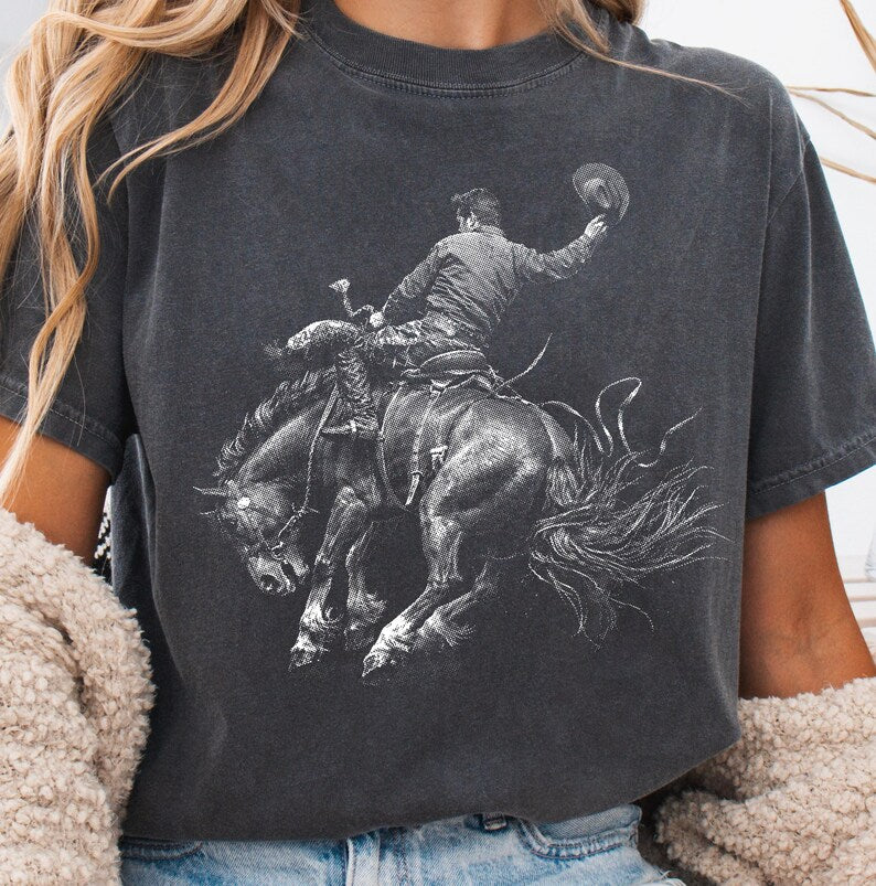 Wild Bronc Half Tone on Pepper Tee - Also in Plus Size