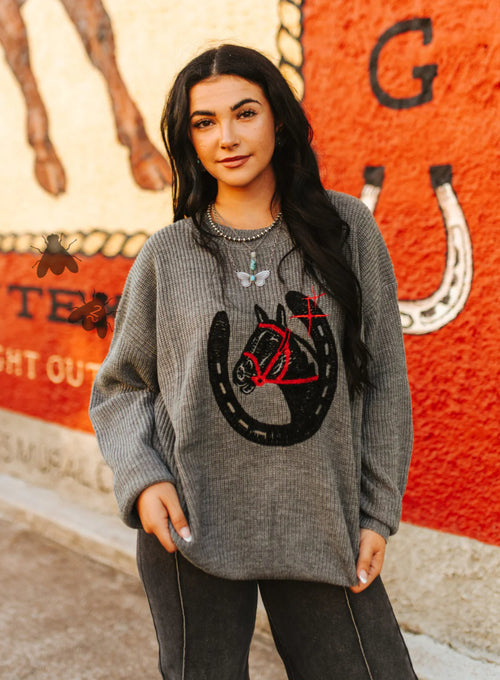 (BLACK FRIDAY) Vintage Lucky Horse Sweater Top - Also in Plus Size