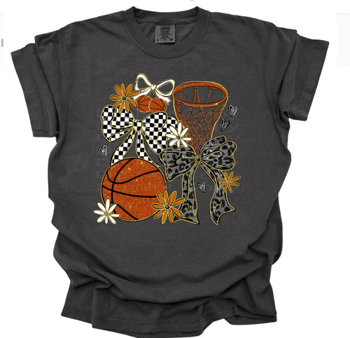 Basketball Collage Checkered Bow Tee - Also in Plus Size