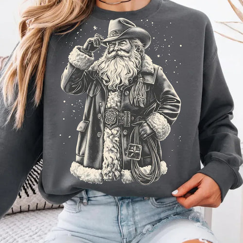 Cowboy Up Santa Half Tone Charcoal Sweatshirt - Also in Plus Size