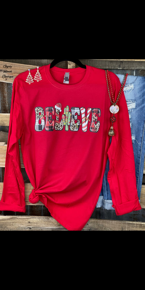 BELIEVE Red Long Sleeve - Also in Plus Size