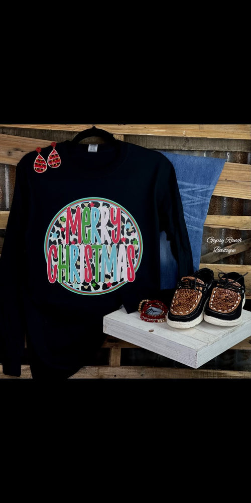 Colorful Christmas Black Long Sleeve Top - Also in Plus Size