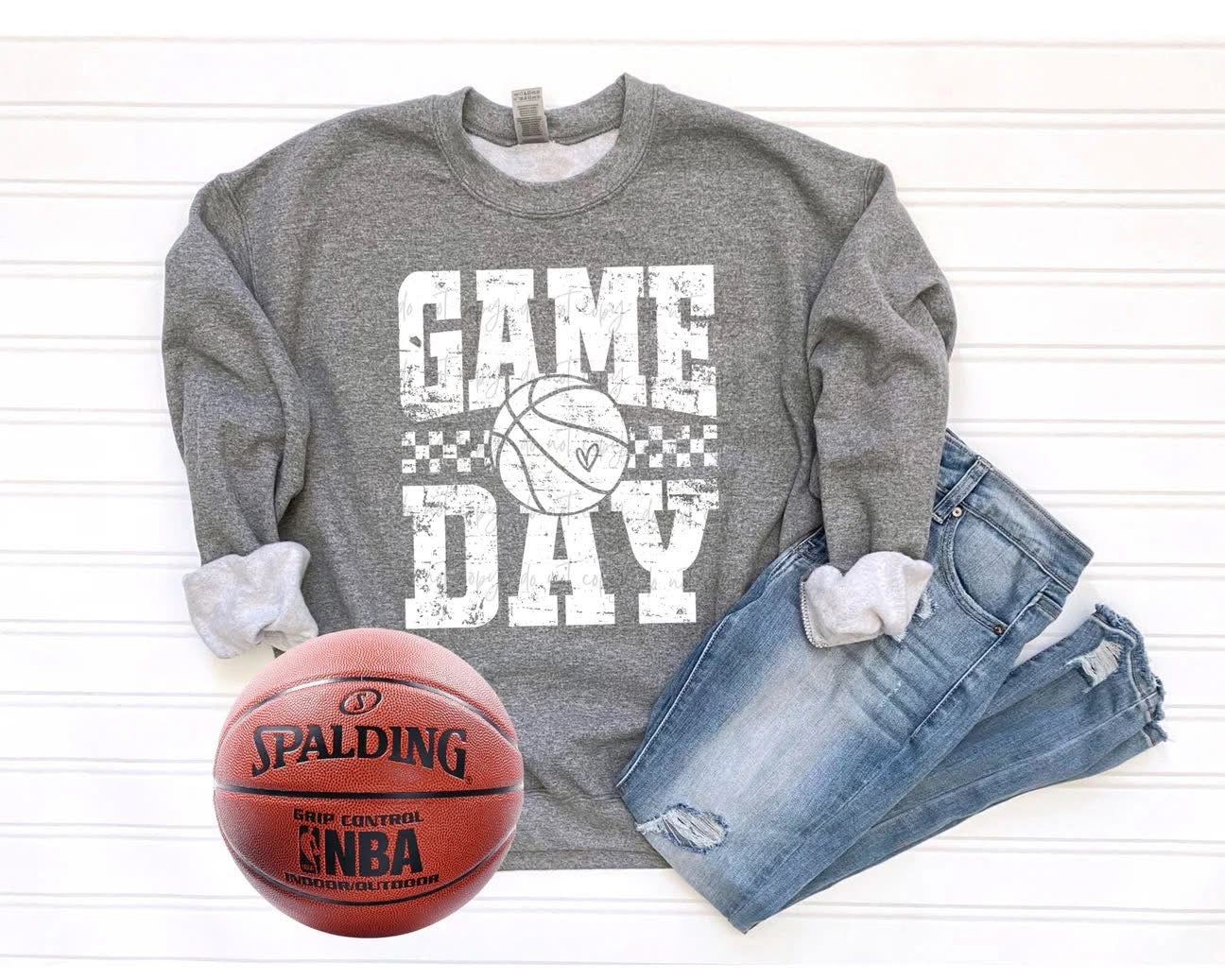 Basketball Game Day on Grey Sweatshirt - Also in Plus Size