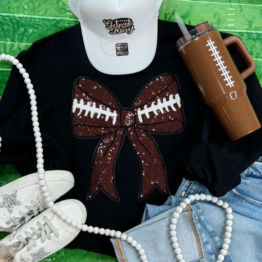 Football Bow Sequin Sweatshirt - Also in Plus Size