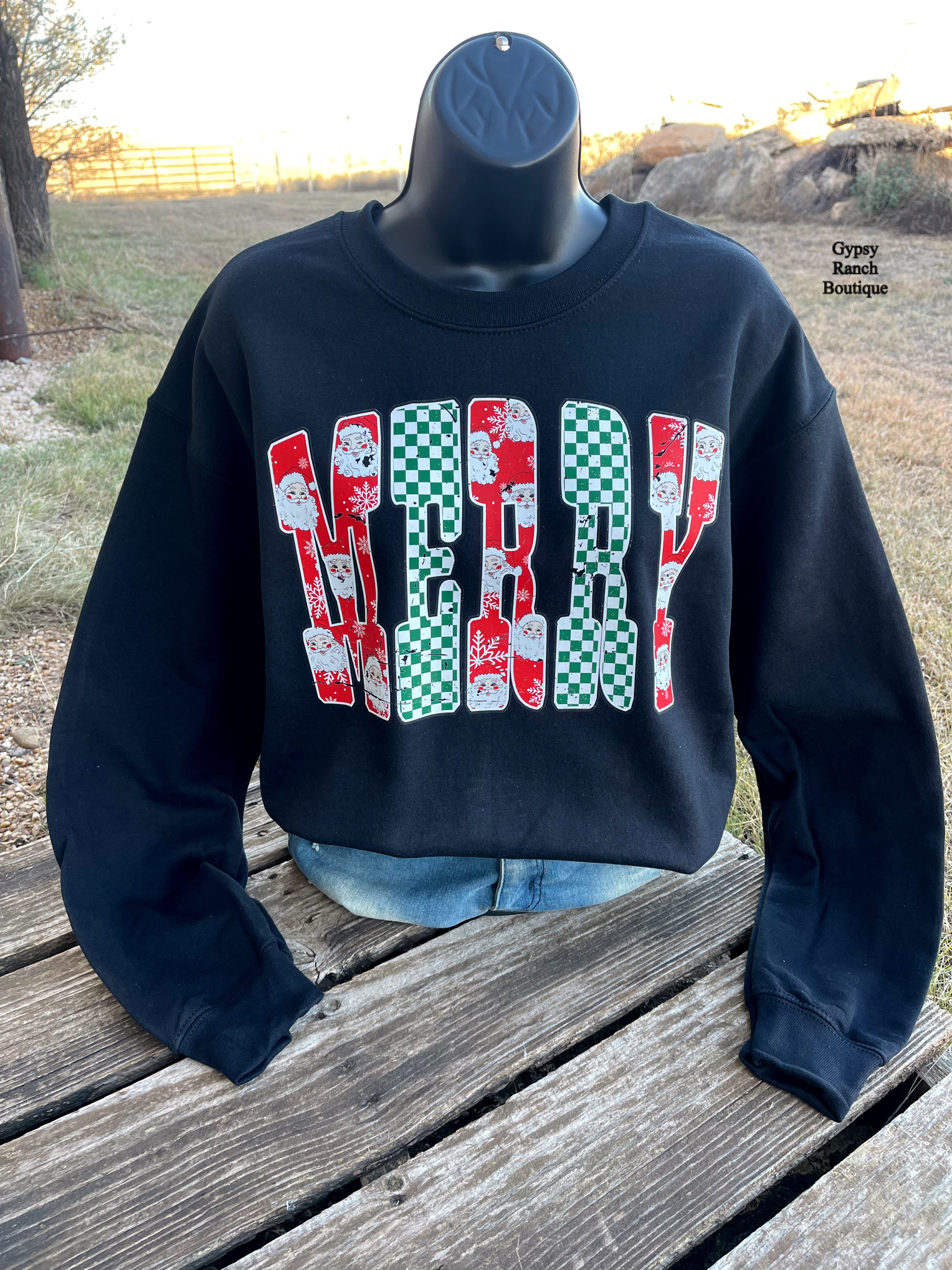 MERRY Checkered & Santa Sweatshirt - Also in Plus Size