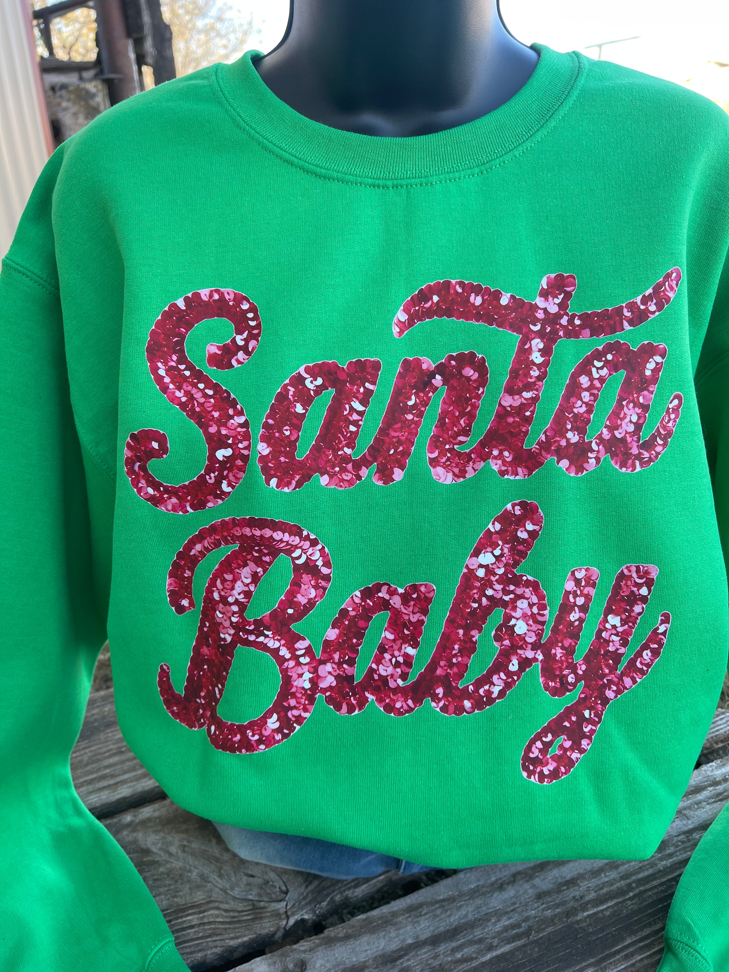 Santa Baby Faux Red Sequin Green Sweatshirt - Also in Plus Size