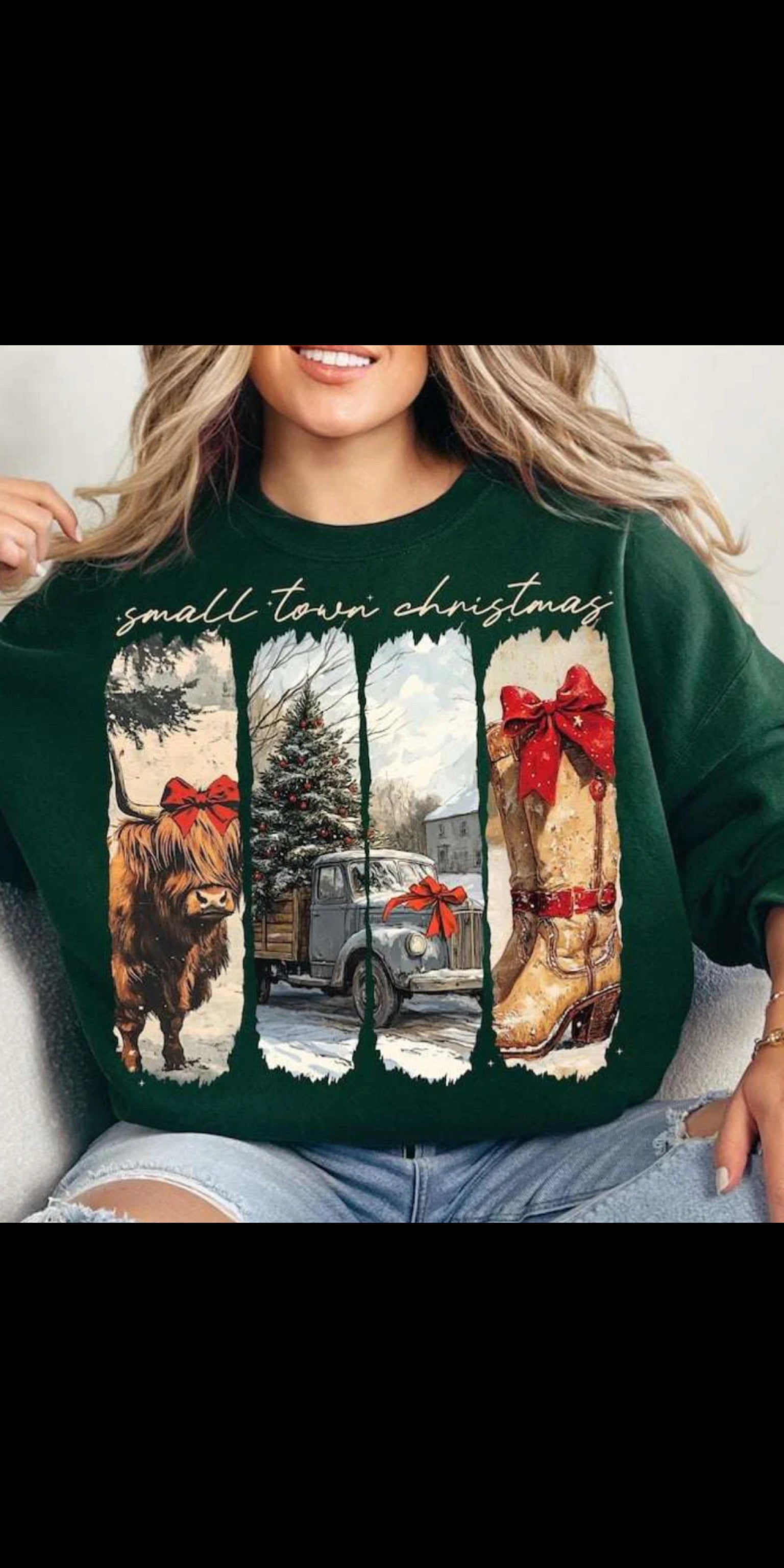 Small Town Christmas on Hunter Green Sweatshirt - Also in Plus Size