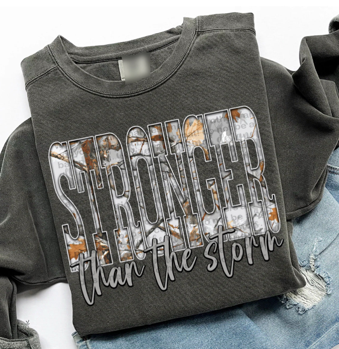 Stronger Than The Storm Camo Charcoal Sweatshirt - Also in Plus Size