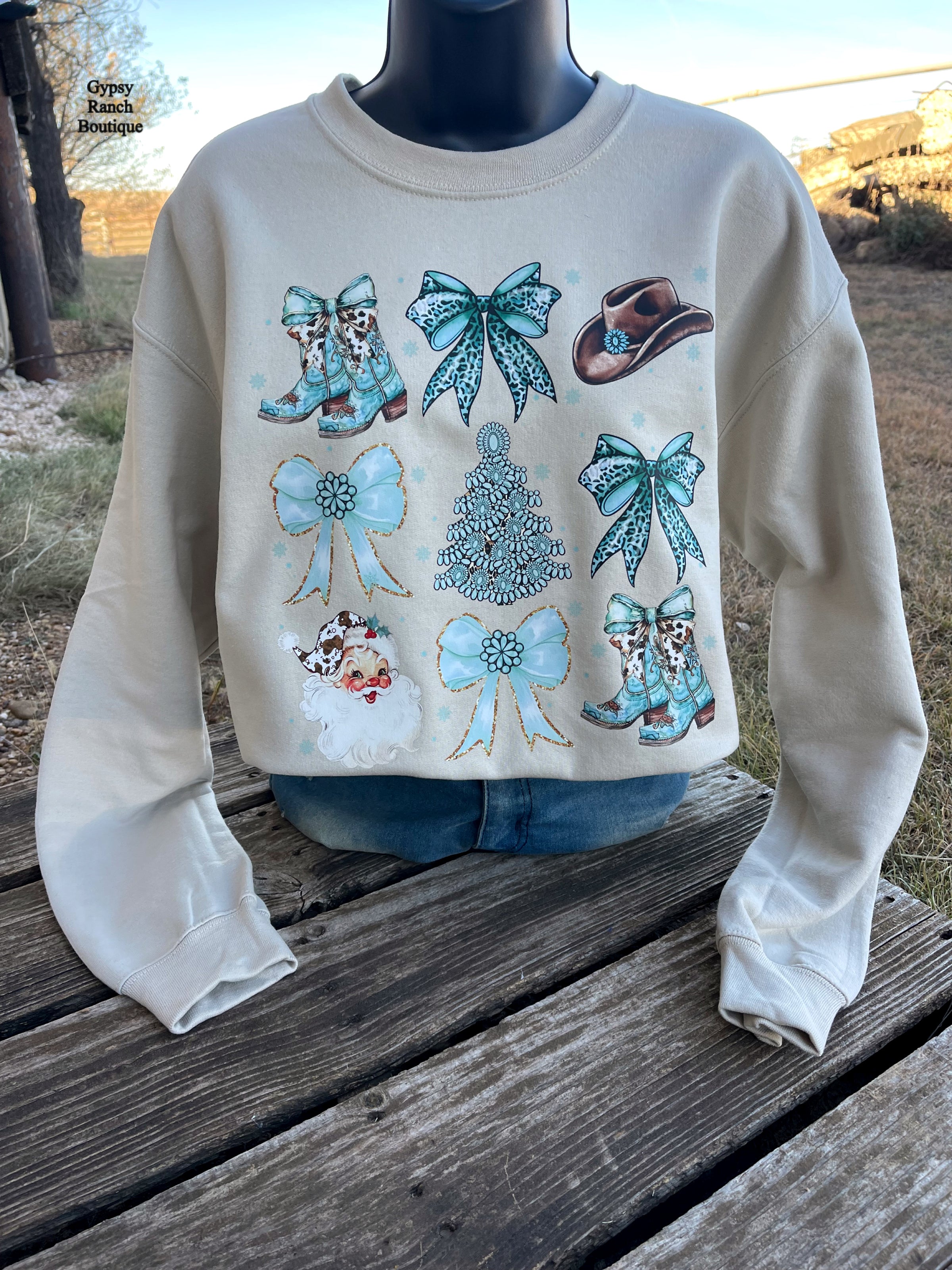 Turquoise Western Christmas Coquette Sweatshirt - Also in Plus Size
