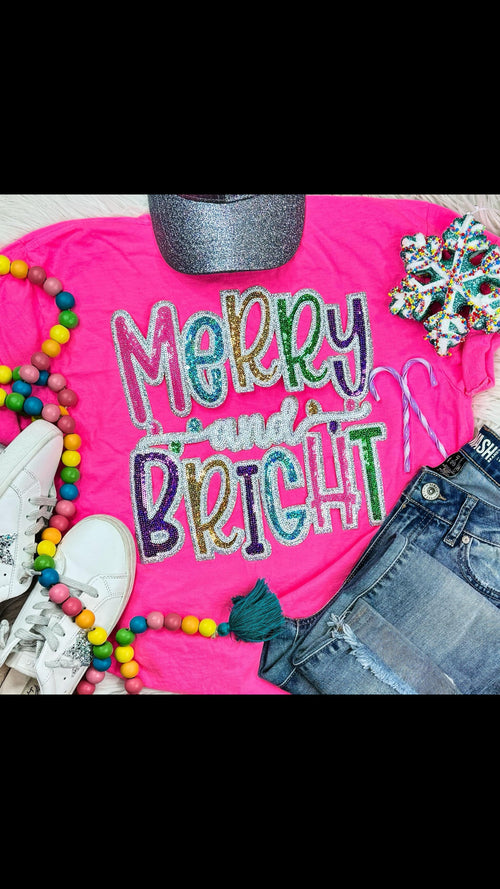 Merry & Bright Sequin Neon Pink Tee - Also in Plus Size