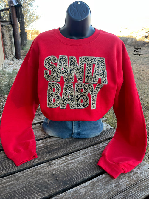 Santa Baby Leopard Faux Glitter Sweatshirt - Also in Plus Size