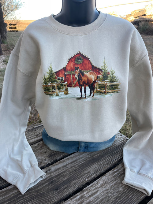 Classic Red Barn & Horse Sweatshirt - Also in Plus Size
