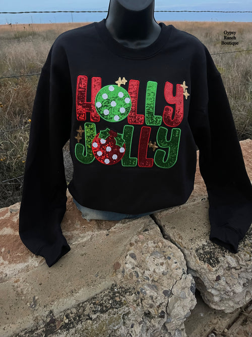 Holly Jolly Sequin Black Sweatshirt - Also in Plus Size