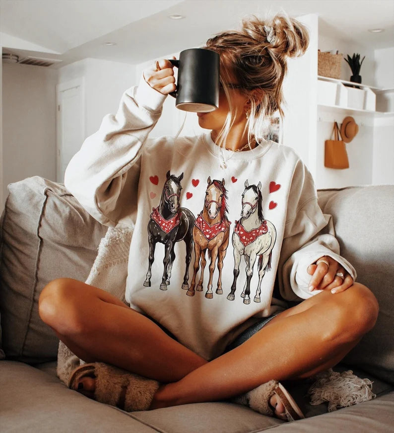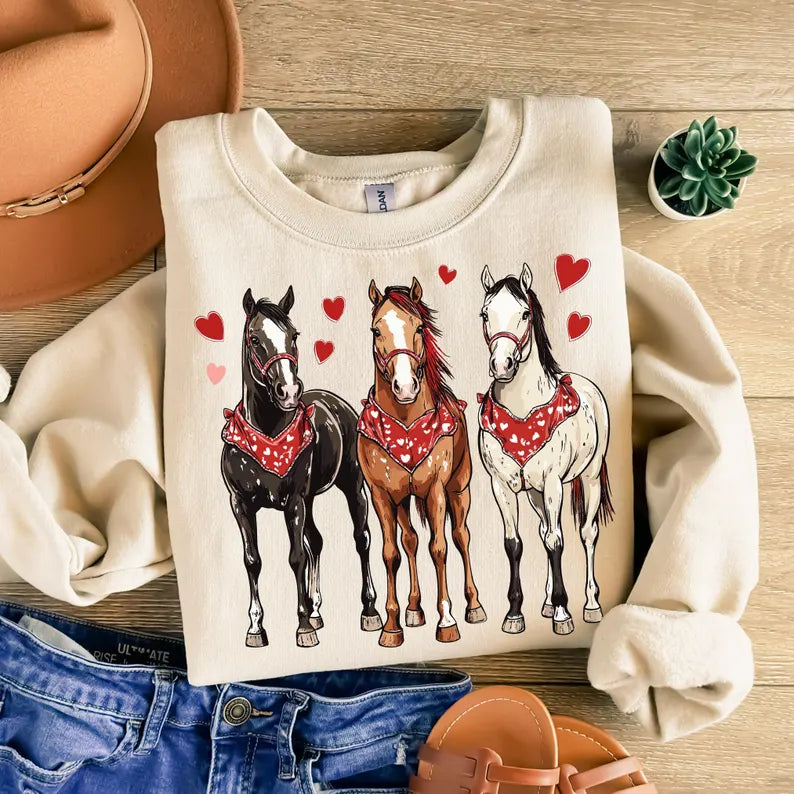Valentine Horse Trio on Sand Sweatshirt - Also in Plus Size